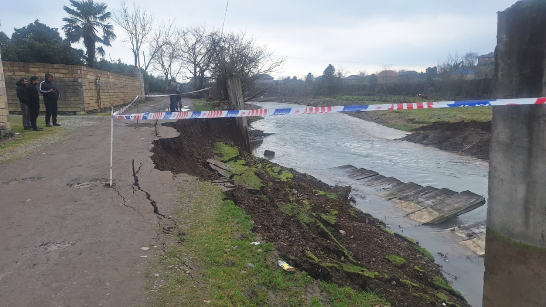 Təhlükəsizlik məqsədilə ərazidə lentlənmə işləri aparılıb və nəqliyyat vasitələrinin dağılan yol hissəsindən keçməsinin qarşısının alınması üçün nəzarət tədbirləri görülür.