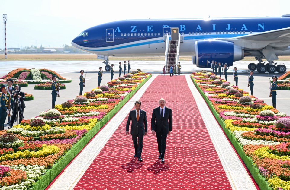 AZƏRTAC xəbər verir ki, Düşənbə Beynəlxalq Aeroportunda dövlətimizin başçısının şərəfinə fəxri qarovul dəstəsi düzülmüşdü.