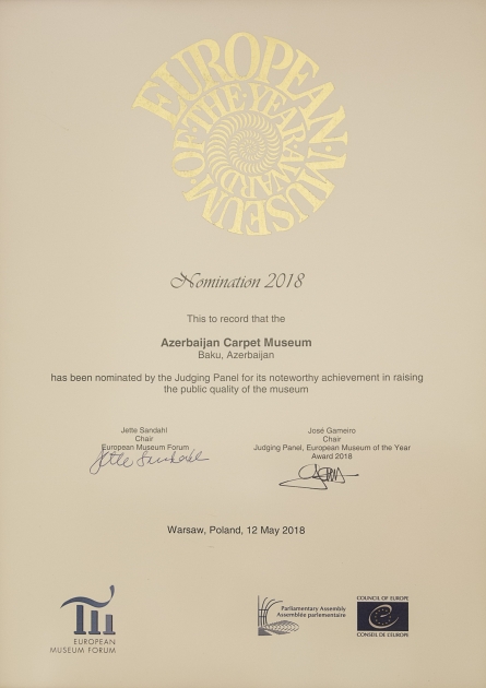 “Avropanın ən yaxşı muzeyi 2018” mükafatına 40 namizəd muzey arasında Azərbaycan Xalça Muzeyi ilə yanaşı, Böyük Britaniya, Türkiyə, İsveç, Hollandiya, Rusiya, Almaniya, Fransa, İtaliya, İspaniya, Portuqaliya, Polşa, Latviya, Estoniya, Andorra, Serbiya, Xorvatiya, Bosniya və Herseqovina, İrlandiya, Macarıstan, Yunanıstan və Finlandiya muzeyləri də olub.