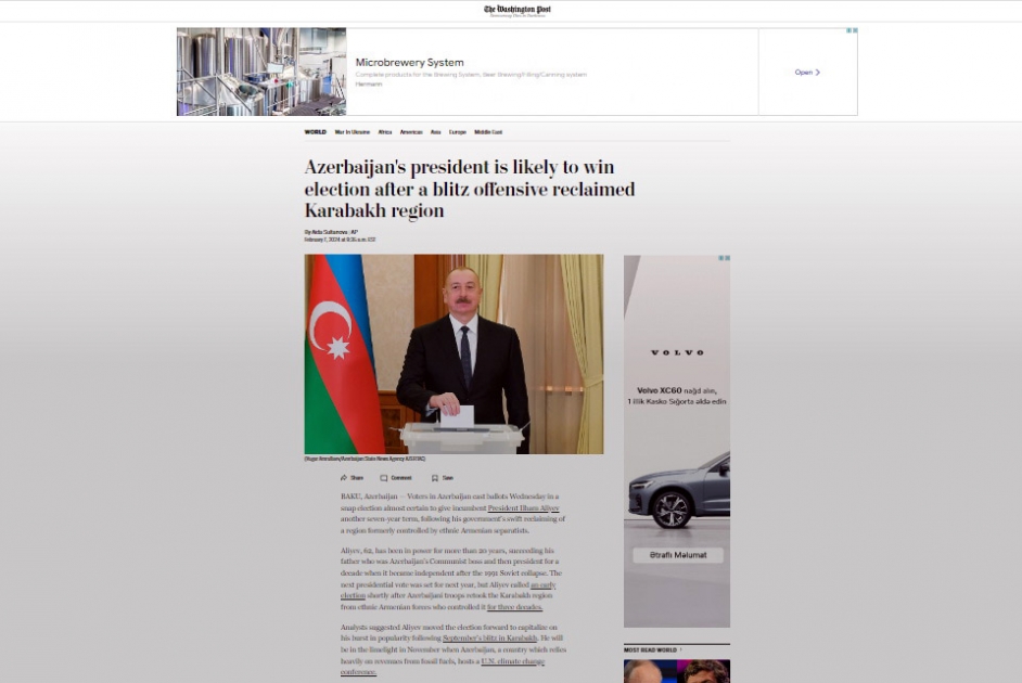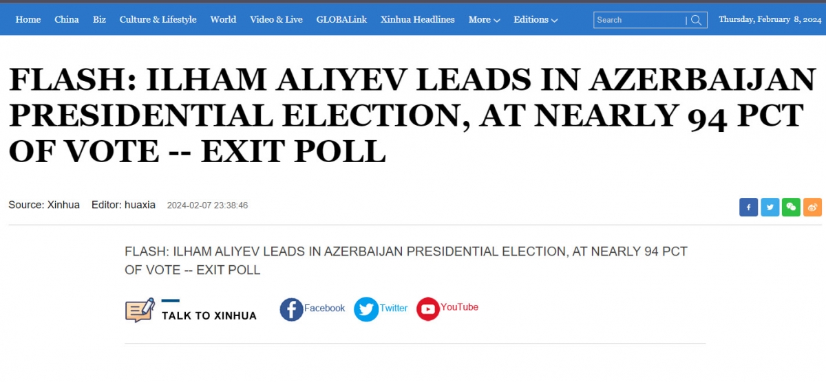 Dünya mediası Azərbaycandakı seçkilərdən və Prezident İlham Əliyevin qələbəsindən yazır