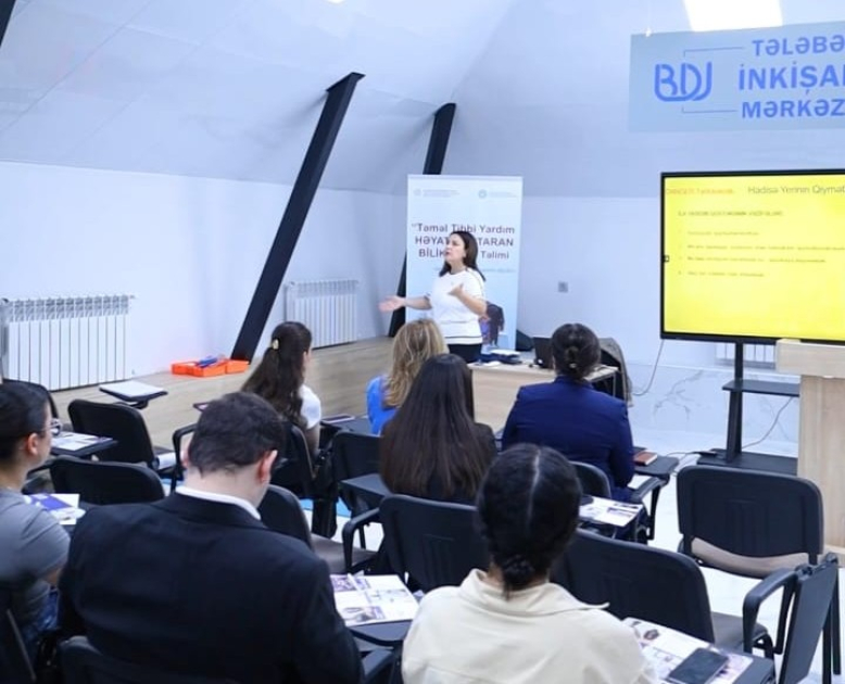 Bakı Dövlət Universitetində (BDU) Tələbə Gənclər Təşkilatının və Özəl Tibb Müəssisələri Assosiasiyasının (ÖTMA) birgə təşkilatçılığı, Qeyri-Hökumət Təşkilatlarına Dövlət Dəstəyi Agentliyinin dəstəyi ilə “Həyata dəstək” layihəsi çərçivəsində ilk yardım üzrə maarifləndirici təlim keçirilib.