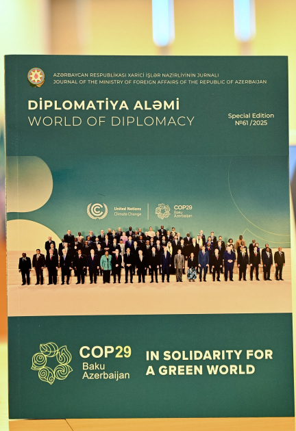 Qeyd edək ki, “Diplomatiya Aləmi” jurnalının 61/2025 saylı növbəti xüsusi buraxılışında Prezident İlham Əliyevin və Birinci vitse-prezident Mehriban Əliyevanın COP29 çərçivəsində keçirilən tədbirlərdə iştirakı və çıxışları, COP29 ilə bağlı xarici işlər naziri və Prezidentin iqlim məsələləri üzrə nümayəndəsinin, eləcə də digər rəsmi şəxslərin məqalələri yer alıb.