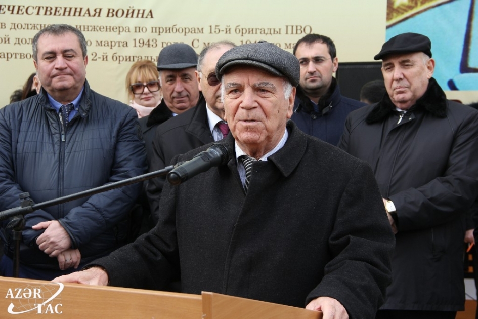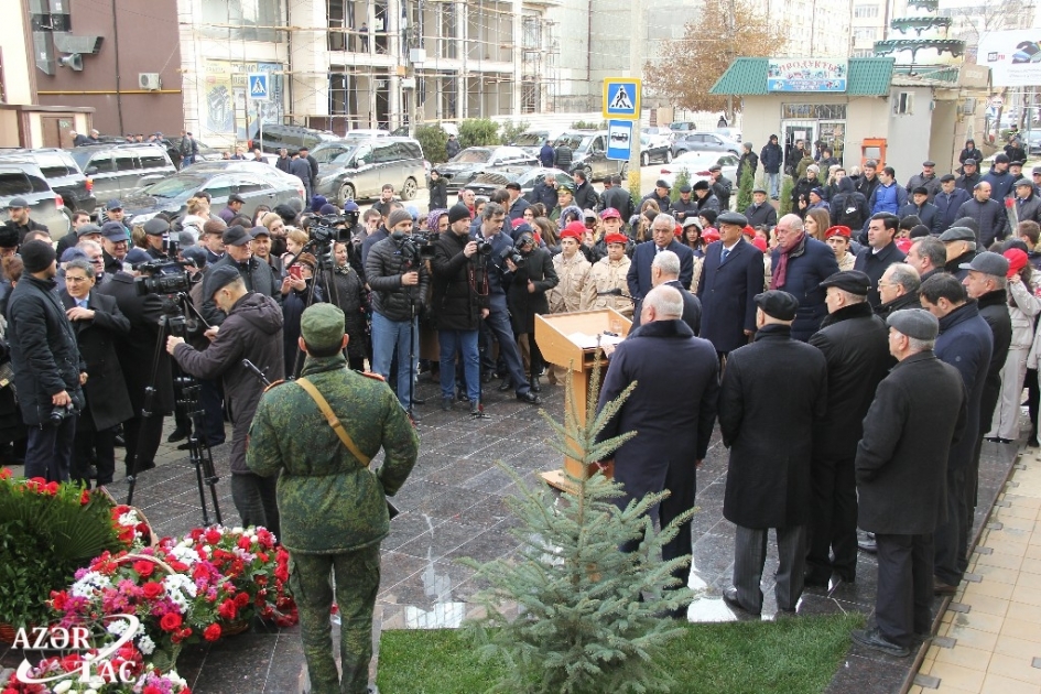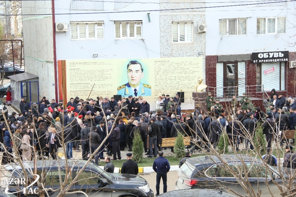 Mərasimdə büstün üzərindəki örtük tədbir iştirakçılarının alqış sədaları altında götürülüb.
