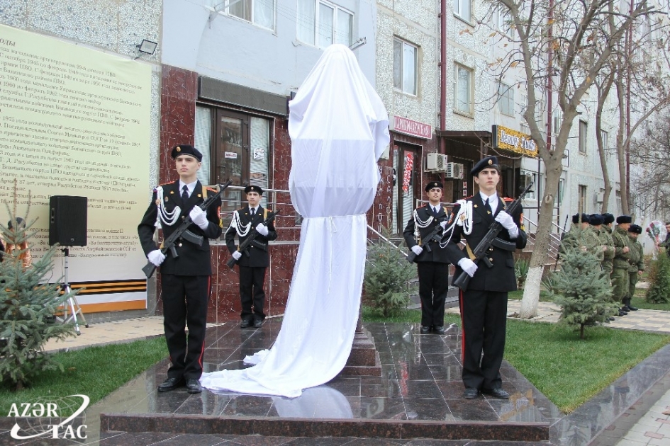 AZƏRTAC xəbər verir ki, abidənin qoyulduğu ərazi general-leytenant Hüseyn Rəsulbəyovun adını daşıyan küçə ilə 345-ci Dağıstan Atıcı Diviziyası küçəsinin kəsişməsində yerləşir.