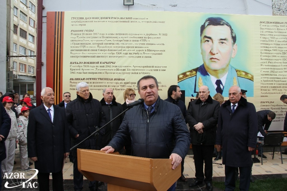 Açılış mərasimində hava hücumundan müdafiə dairəsinin zenit-artilleriya qoşunlarının komandanı vəzifəsinədək yüksəlmiş azərbaycanlı general-leytenant Hüseyn Rəsulbəyovun tarixi xidmətləri xatırlanıb, həyat və fəaliyyəti barədə ətraflı söhbət açılıb.