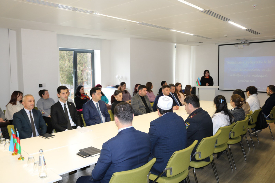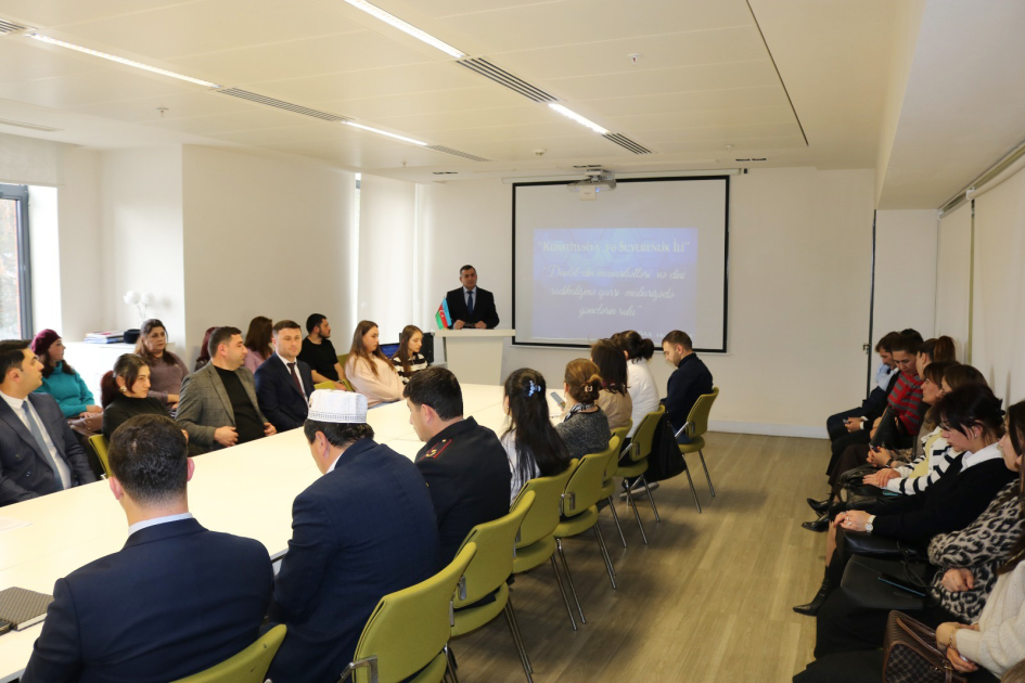 Tədbirdə çıxış edən rayon icra hakimiyyəti başçısının müavini, İctimai-siyasi və humanitar məsələlər şöbəsinin müdiri Vəfa Heydərova bu cür maarifləndirici görüşlərin keçirilməsinin gənclərin maarifləndirilməsi, milli-mənəvi dəyərlərimizin, ölkəmizdə mövcud tolerant mühitin qorunması və təbliği, dini radikalizm meyillərinin qarşısının alınması baxımından mühüm əhəmiyyət daşıdığını vurğulayıb. O, Azərbaycanın İslam ölkəsi olmaqla yanaşı, eyni zamanda, dünyəvi dövlət olduğunu qeyd edib, dövlətin dinə qayğısı və tolerantlıq siyasəti barədə danışıb.