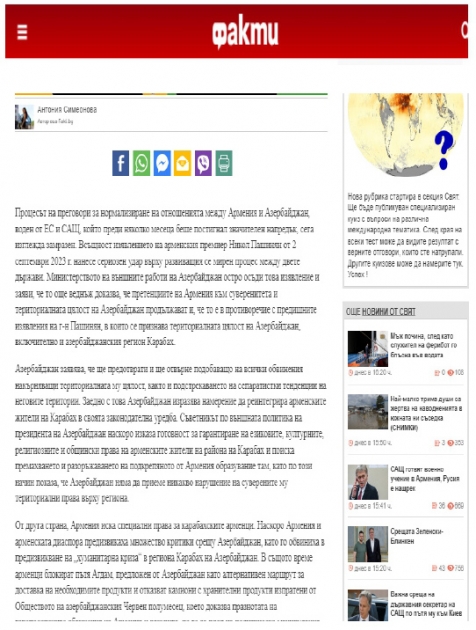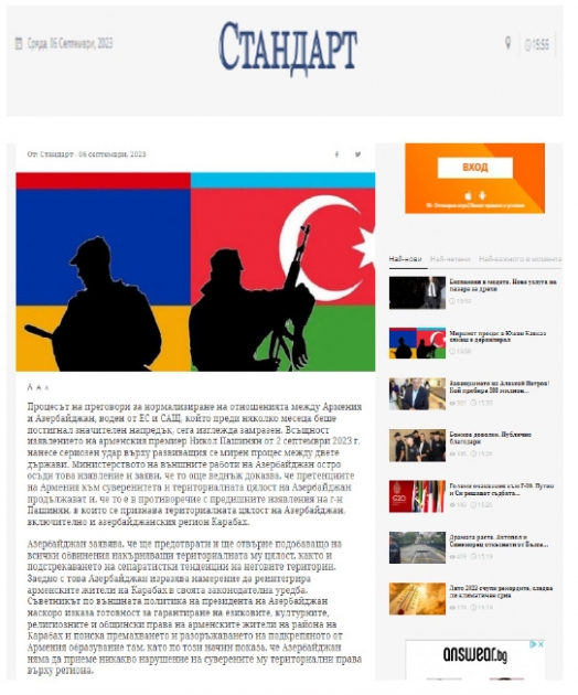 Ermənistanın sülh prosesinə qarşı davam edən təxribatları Bolqarıstan mətbuatında