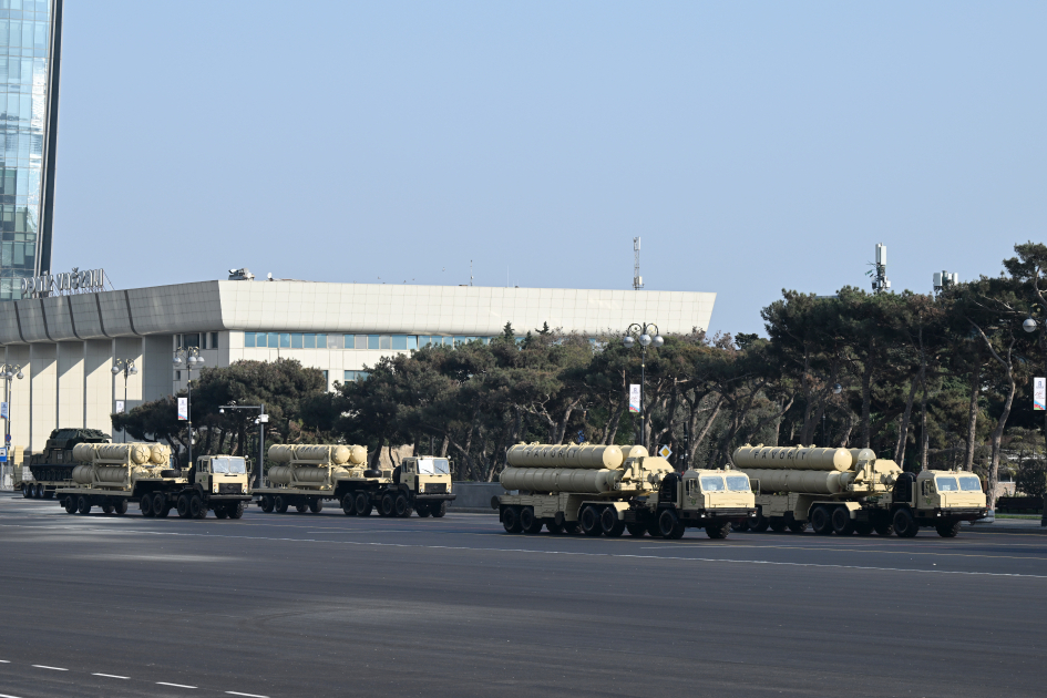 Hava Hücumundan Müdafiə silahları sistemləri kolonuna “Vətən uğrunda” medalı ilə təltif olunmuş general-mayor Zaur Yusifli başçılıq edib. Tribuna önündən “S-125 TM”, “BUK-MB”, “BUK-MB2K”, “İLDIRIM-8”, “S-300 FAVORİT” və “TOR-2M” zenit-raket komplekslərinin keçidi olub. Ardınca silahlanmaya yeni qəbul edilmiş Yerli Müdafiə Sənayesinin məhsulu “VİKİNQ” hava hədəflərinə qarşı çoxfunksiyalı mobil döyüş kompleksi, təkmilləşdirilmiş “Şilka” özüyeriyən zenit qurğusu və “HQ-9” uzaqmənzilli zenit-raket kompleksi nümayiş olunub.