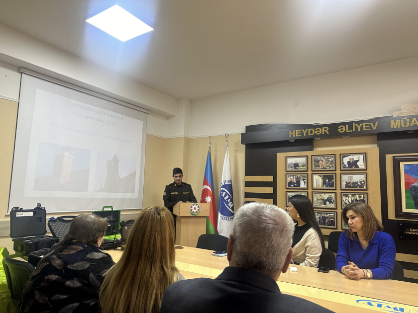 Fövqəladə Hallar Nazirliyinin (FHN) Bakı Regional Mərkəzi tərəfindən Azərbaycan Turizm və Menecment Universitetində (ATMU) “Əhalinin fövqəladə hallar zamanı mühafizəsinin təşkili” mövzusunda nümunəvi dərs keçirilib.