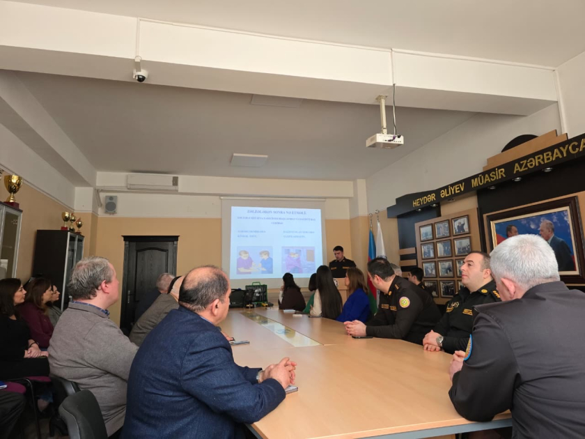 FHN-in Bakı Regional Mərkəzinin, Dövlət Yanğın Nəzarəti, Kiçik Həcmli Gəmilərə Nəzarət və Sularda Xilasetmə Dövlət xidmətlərinin əməkdaşları fövqəladə halların qarşısının alınması və nəticələrinin aradan qaldırılması üzrə fəaliyyətin təkmilləşdirilməsi istiqamətindən danışıblar. Mərkəzin əməkdaşları mülki müdafiənin əsas prinsipləri, fövqəladə hallar və bununla bağlı davranış qaydaları barədə məlumat verib, mövzuya aid fotoslaydlar və videoçarxlar nümayiş etdiriblər.
