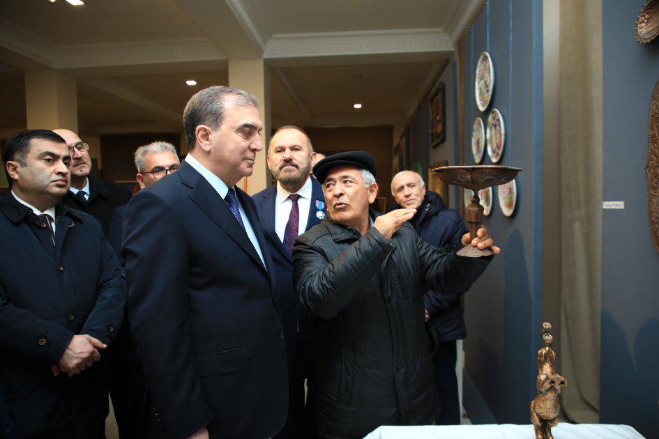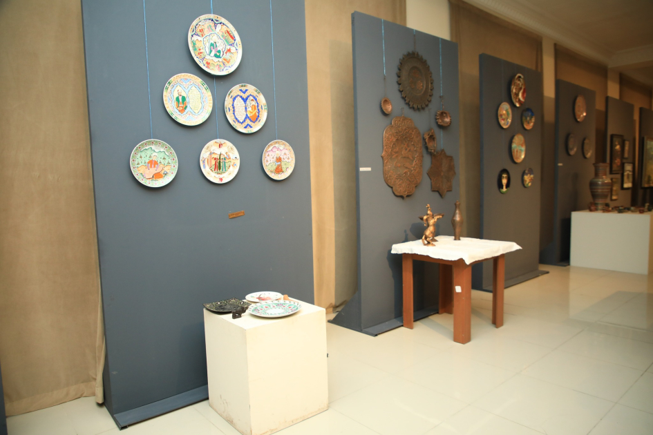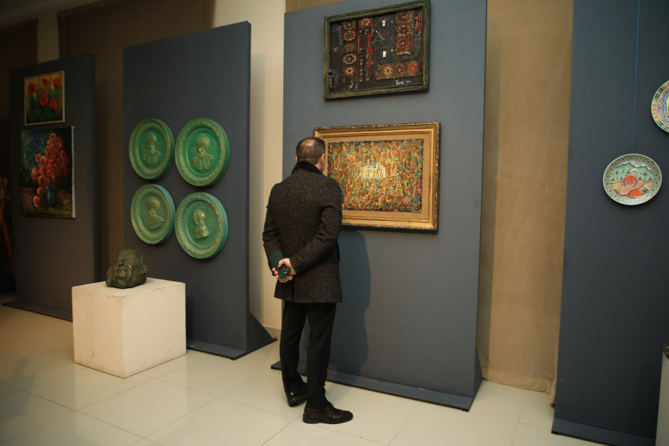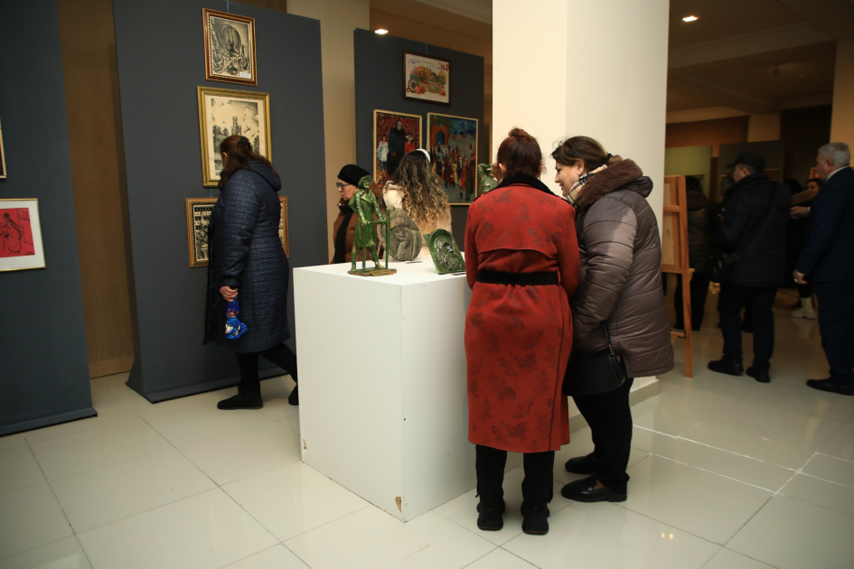 Daha sonra qonaqlar sərgi ilə tanış olaraq nümayiş etdirilən əsərlərə baxış keçiriblər.