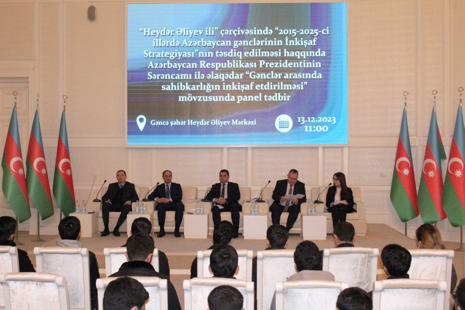 Gəncə-Daşkəsən Regional Mədəniyyət İdarəsinin dəstəyi, Gəncə şəhər Heydər Əliyev Mərkəzinin təşkilatçılığı ilə “Heydər Əliyev İli” çərçivəsində “2015-2025-ci illərdə Azərbaycan gənclərinin İnkişaf Strategiyası”nın təsdiq edilməsi haqqında Azərbaycan Respublikası Prezidentinin Sərəncamı ilə əlaqədar “Gənclər arasında sahibkarlığın inkişaf etdirilməsi” mövzusunda panel tədbir keçirilib.