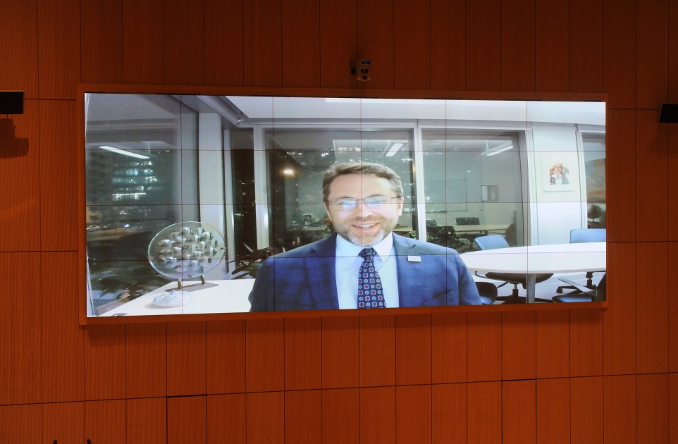 Daha sonra Corc Vaşinqton Universitetinin Mühəndislik və tətbiqi elmlər fakültəsinin dekanı Con Lakın videomüraciəti izlənilib.