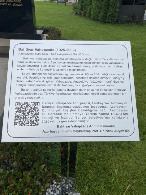 İstanbulun mərkəzi hissələrindən olan Sarıyer rayonunda Azərbaycanın Xalq şairi Bəxtiyar Vahabzadənin barelyefinin açılışı olub.