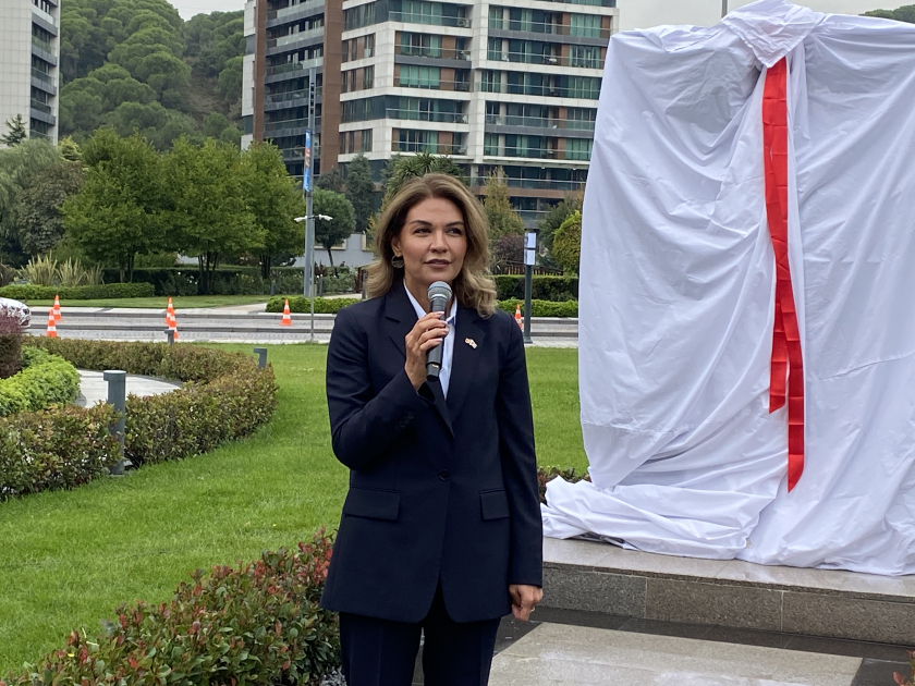 Azərbaycan və Türkiyənin Dövlət himnlərinin səsləndirilməsi ilə başlayan mərasimdə çıxış edən İstanbuldakı baş konsulumuz Nərminə Mustafayeva mədəniyyətimiz və qardaşlığımızın rəmzlərindən biri olan belə bir abidənin yaradılmasında iştirak etməkdən məmnunluğunu bildirib. O deyib: “Açılışını etdiyimiz bu abidə bir əsər olmaqla yanaşı, iki xalqın ortaq hafizə və könül birliyinin təzahürüdür. Bəxtiyar Vahabzadə sadəcə Azərbaycanın deyil, bütün Türk dünyasının qələmi idi. Türk dünyasının mənəvi birliyini bu qədər açıq şəkildə dilə gətirən ikinci şair tapmaq çətindir. O, milli mübarizəmizdə qələmini qılınc kimi istifadə edərək milli dəyərlərimizin yenidən oyanması, qardaş millətlərin hər zaman bir-birinə dəstək olmasının əhəmiyyətinə inanan dahi şəxsiyyət idi. Azərbaycan Prezidentinin Bəxtiyar Vahabzadənin 100 illik yubileyinin qeyd edilməsi haqqında Sərəncamı onun fikirlərinə olan böyük hörmətin göstəricisidir”.