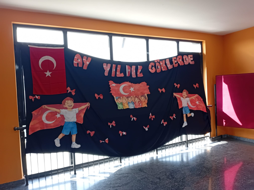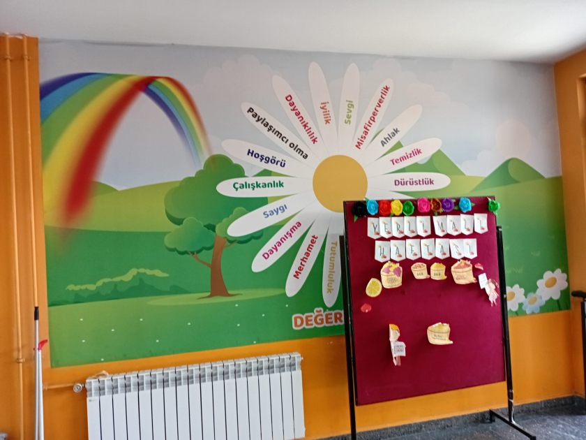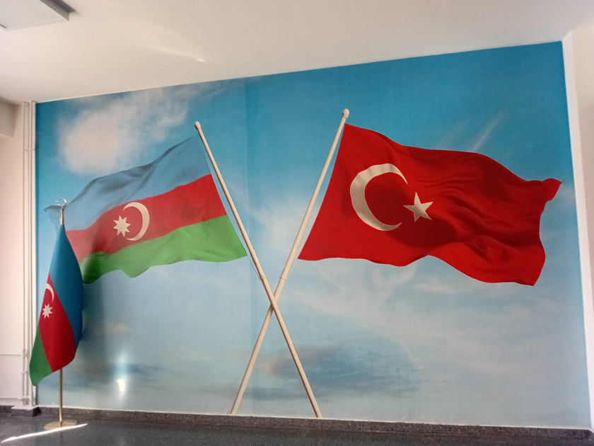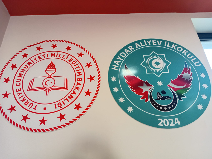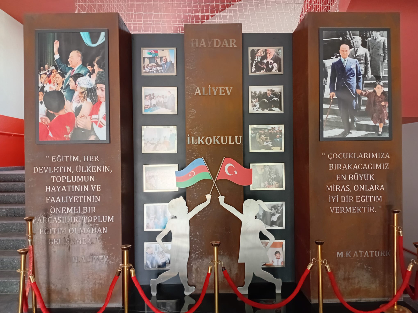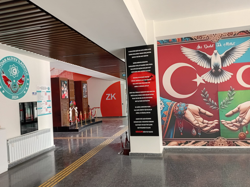 Sinif otaqlarında və dəhlizlərdə iki ölkənin bayraqları asılıb, məktəbin əsas girişində isə Ümummilli Lider Heydər Əliyevin portreti olan stend qoyulub.