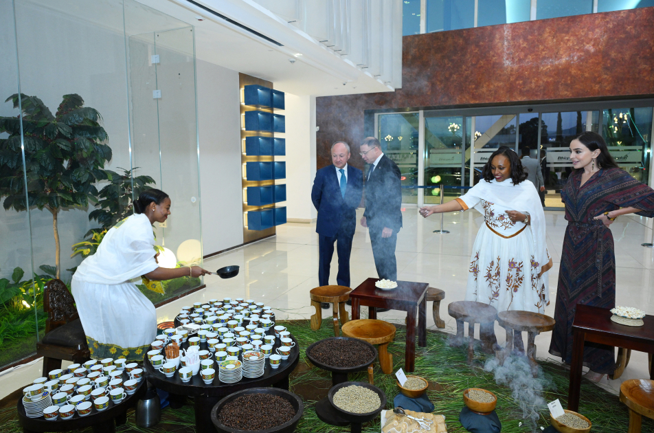 Leyla Əliyevanın şərəfinə Efiopiyanın qədim və zəngin mədəniyyətini əks etdirən ənənəvi qəhvə mərasimi təşkil olunub. Tədbir zamanı qonaqlara bu qədim ritualın detalı haqqında məlumat verilib. Mərasimin sonunda qonaqlara əsrarəngiz ətri və özünəməxsus dadı ilə seçilən təzə dəmlənmiş Efiopiya qəhvəsi təqdim olunub.