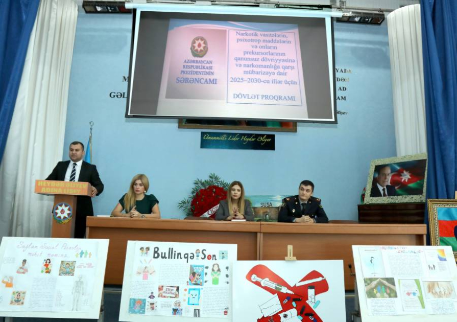 “Narkotik vasitələrin, psixotrop maddələrin və onların prekursorlarının qanunsuz dövriyyəsinə və narkomanlığa qarşı mübarizəyə dair 2025–2030-cu illər üçün Dövlət Proqramı”nın həyata keçilməsi üzrə Tədbirlər Planına əsasən, ümumi təhsil müəssisələrinin yuxarı sinif şagirdləri arasında maarifləndirmə işinin səmərəli təşkili məqsədilə Narkomanlığa və Narkotik Vasitələrin Qanunsuz Dövriyyəsinə qarşı Mübarizə üzrə Dövlət Komissiyasının daimi fəaliyyət göstərən İşçi Qrupunun, Xətai Rayon İcra Hakimiyyətinin və Heydər Əliyev adına liseyin birgə təşkilatçılığı ilə maarifləndirici tədbir keçirilib.