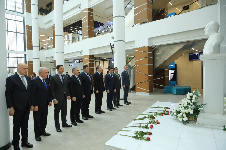 AZƏRTAC-ın bölgə müxbiri xəbər verir ki, əvvəlcə Ulu Öndər Heydər Əliyevin 2 saylı Gəncə regional “ASAN xidmət” mərkəzində yerləşən büstü ziyarət olunub, önünə tər çiçəklər düzülüb.