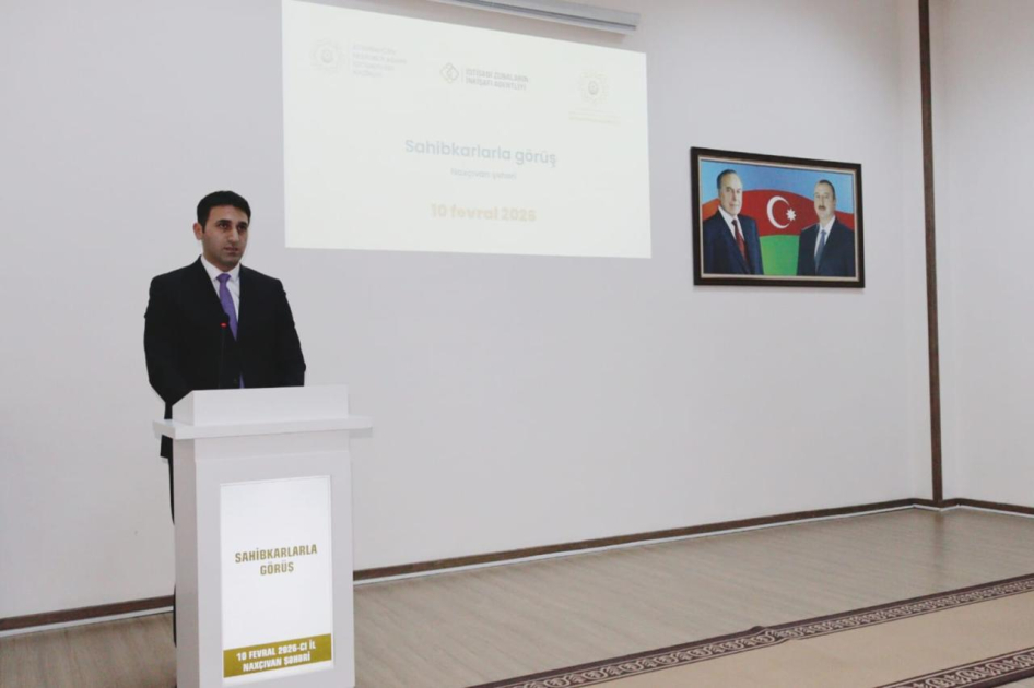Fevralın 10-da Naxçıvan Muxtar Respublikası İqtisadiyyat Nazirliyinin təşkilatçılığı ilə Azərbaycan Respublikası İqtisadiyyat Nazirliyinin tabeliyində İqtisadi Zonaların İnkişafı Agentliyinin nümayəndə heyətinin Naxçıvan Muxtar Respublikasına səfəri çərçivəsində sahibkarlarla görüş keçirilib.