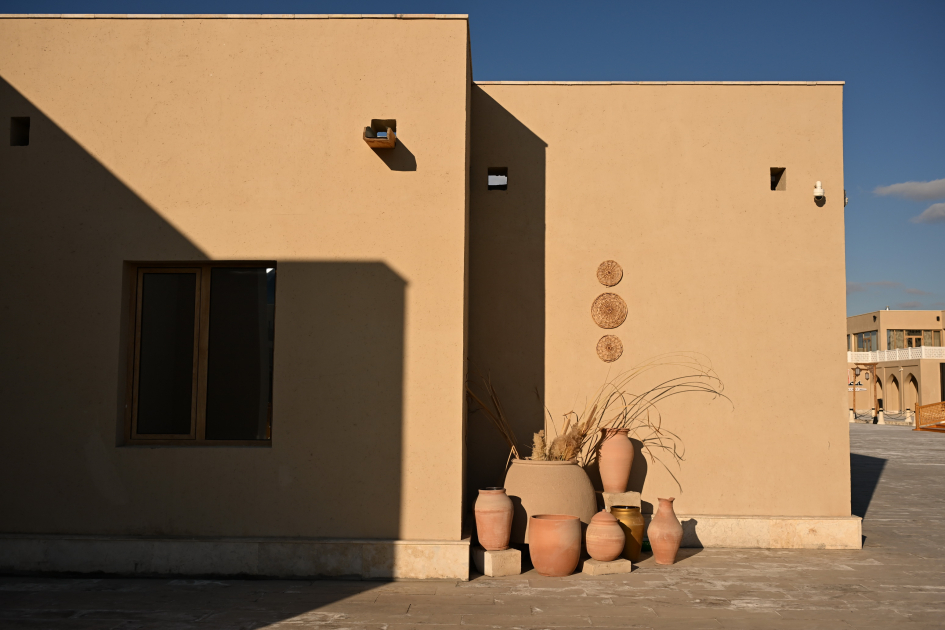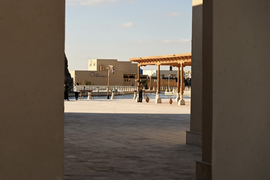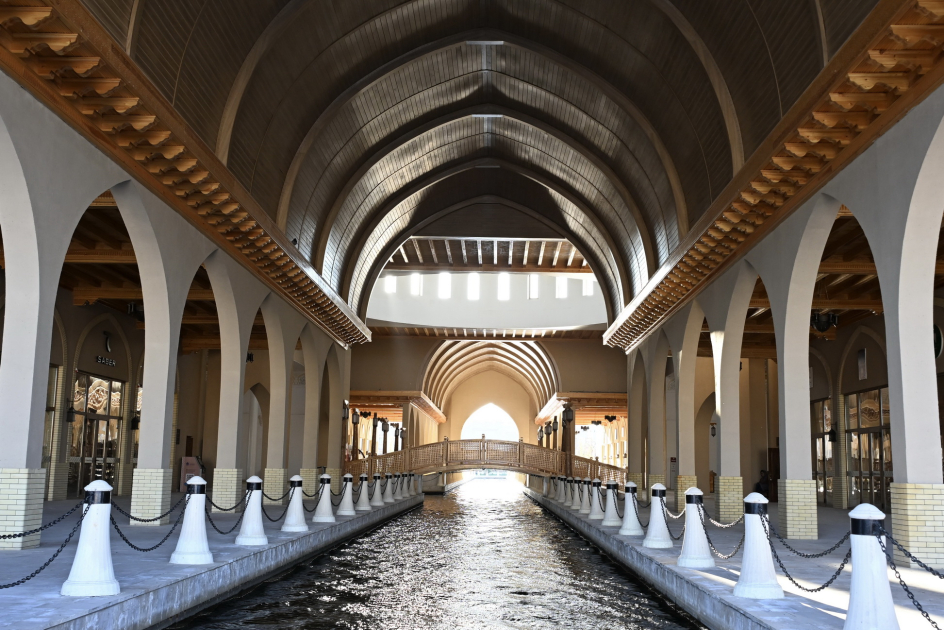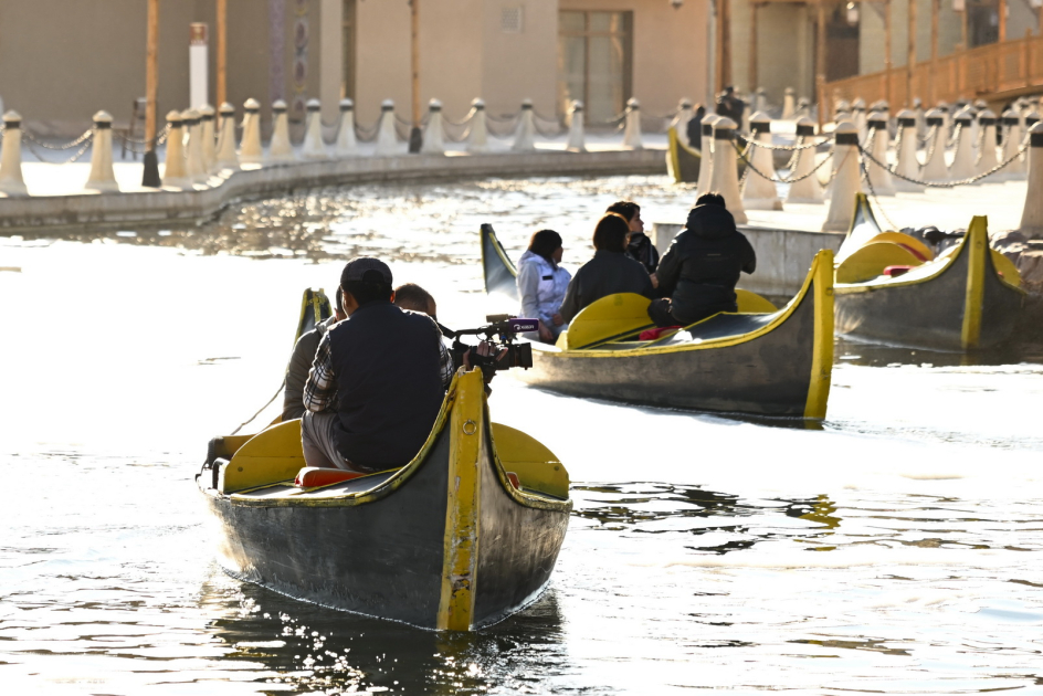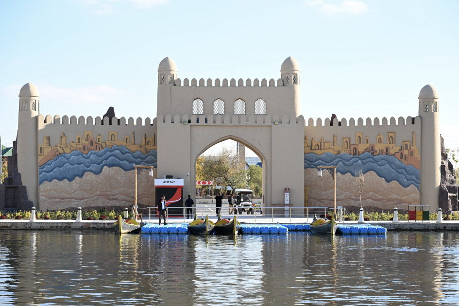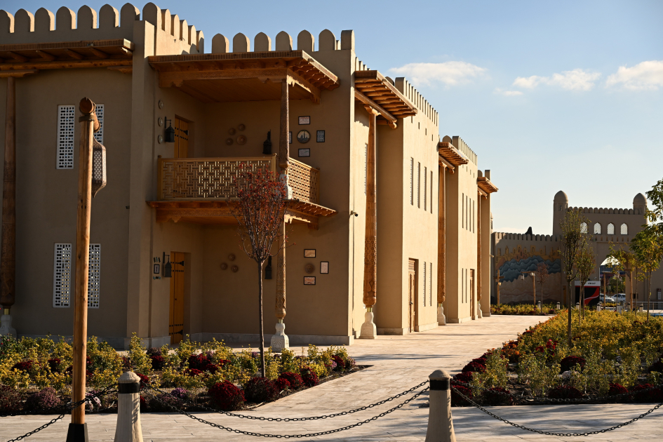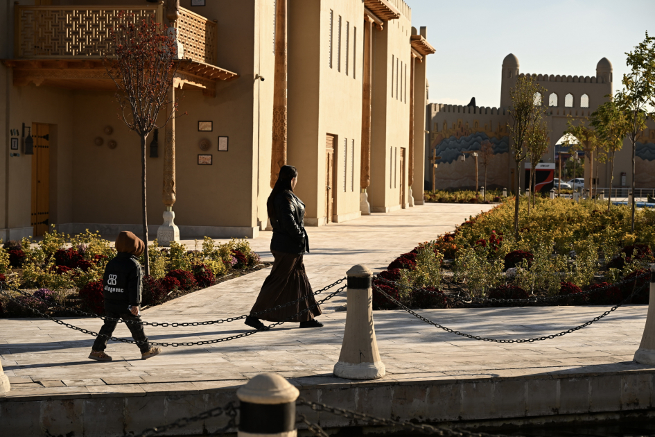 Qoş-Darvozanın oyma taxta darvazalarına yaxınlaşanda, sanki kompleksin girişinin məni keçmişə apardığını hiss etdim. “İçəri girəndə özünüzü kiçik bir Xivədə tapırsınız. Kalta-Minor qülləsinin bir nüsxəsi, çoxsaylı orta əsrlər üslublu memarlıq tikililəri, dar küçələr və avarçəkmə kanalları var. Burada qondola gəzintisi Şərq xəyalına, səhranın ortasında kiçik bir Venesiyaya girmək kimidir”, - deyə həmsöhbətimiz izah edir.