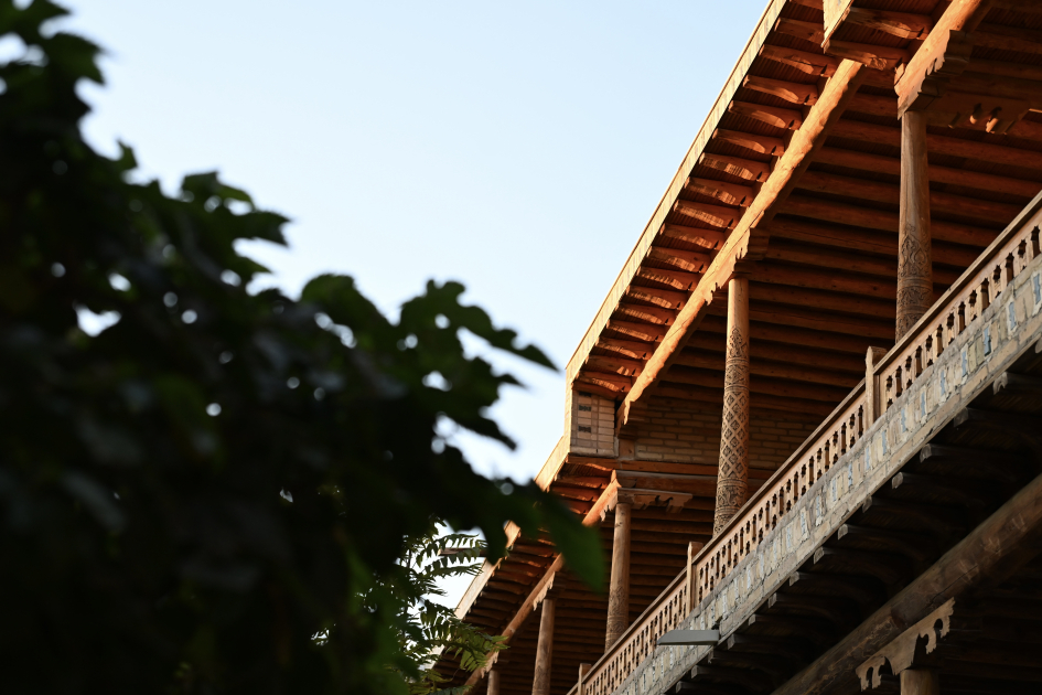 O, bizi bütün dəhlizlərdən keçirir, xidmətçilərin və gözətçilərin yerləşdiyi yerləri, arxivləri, mədrəsəni, gül bağçasını göstərir. Sonra əlavə edir: “Bu gün saray tamamilə bərpa edilib. Bu, Xivənin canlı tarixidir, burada həmin dövrün nəfəsini, ipək paltarların xışıltısını, buxur ətrini və saray qəbullarının musiqisini hiss edə bilərsiniz”.