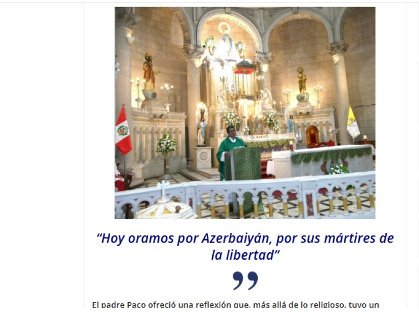 Məqalədə yazılır ki, mərasim zamanı ata Pako adlanan baş keşiş Fransisko Ameskita bu gün Azərbaycan üçün, onun azadlıq şəhidləri üçün dua etdiklərini xüsusi vurğulayıb. O, Papa Fransiskin fikirlərinə istinad edərək bildirib ki, sülh ədalət, dialoq və qardaşlıq yolu ilə qurulur. F.Ameskita deyib ki, Azərbaycan üçün milli matəm günündə keçirilən bu dini ayin dünya sülhünə, xüsusilə də Azərbaycan xalqına həsr edilib.