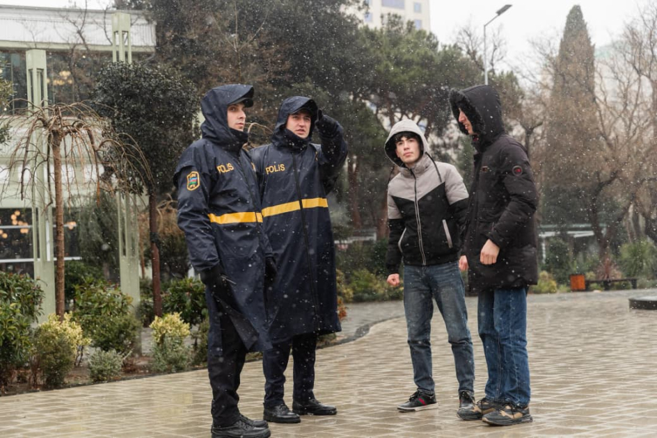 Daxili İşlər Nazirliyinin mətbuat xidmətindən AZƏRTAC-a bildirilib ki, mövcud hava şəraiti ilə bağlı vətəndaşların təhlükəsizliyinin təmini məqsədilə polis naryadları küçə və prospektlər boyu xidmətə cəlb ediliblər.