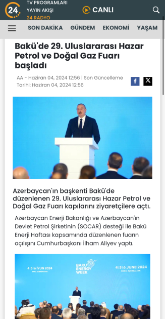 “Prezident Əliyev: Azərbaycanın təbii qaz qıtlığı aradan qaldırılıb”, “Bakıda 29-cu Beynəlxalq Xəzər Neft və Təbii Qaz Sərgisi işə başlayıb”, “Azərbaycan Prezidenti Əliyev: Azərbaycan qaz təchizatı məsələlərində özünü etibarlı tərəfdaş kimi artıq sübut edib”, “Prezident Əliyev Bakı Enerji Həftəsində çıxış etdi: Azərbaycan Avropanın qaz təchizatçısıdır” və digər sərlövhələrlə yayımlanan xəbərlərdə Azərbaycan Prezidentinin tədbirdəki çıxışı xüsusilə diqqət mərkəzində saxlanılıb.