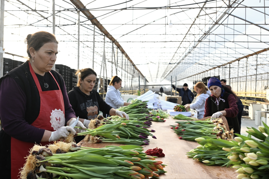 AZƏRTAC-ın əməkdaşları istixanada bu zərif çiçəyin soğanağının əkilməsindən yığım mərhələsinə qədər keçdiyi uzun və maraqlı yol ilə tanış olublar və görülən işləri yaxından müşahidə ediblər.