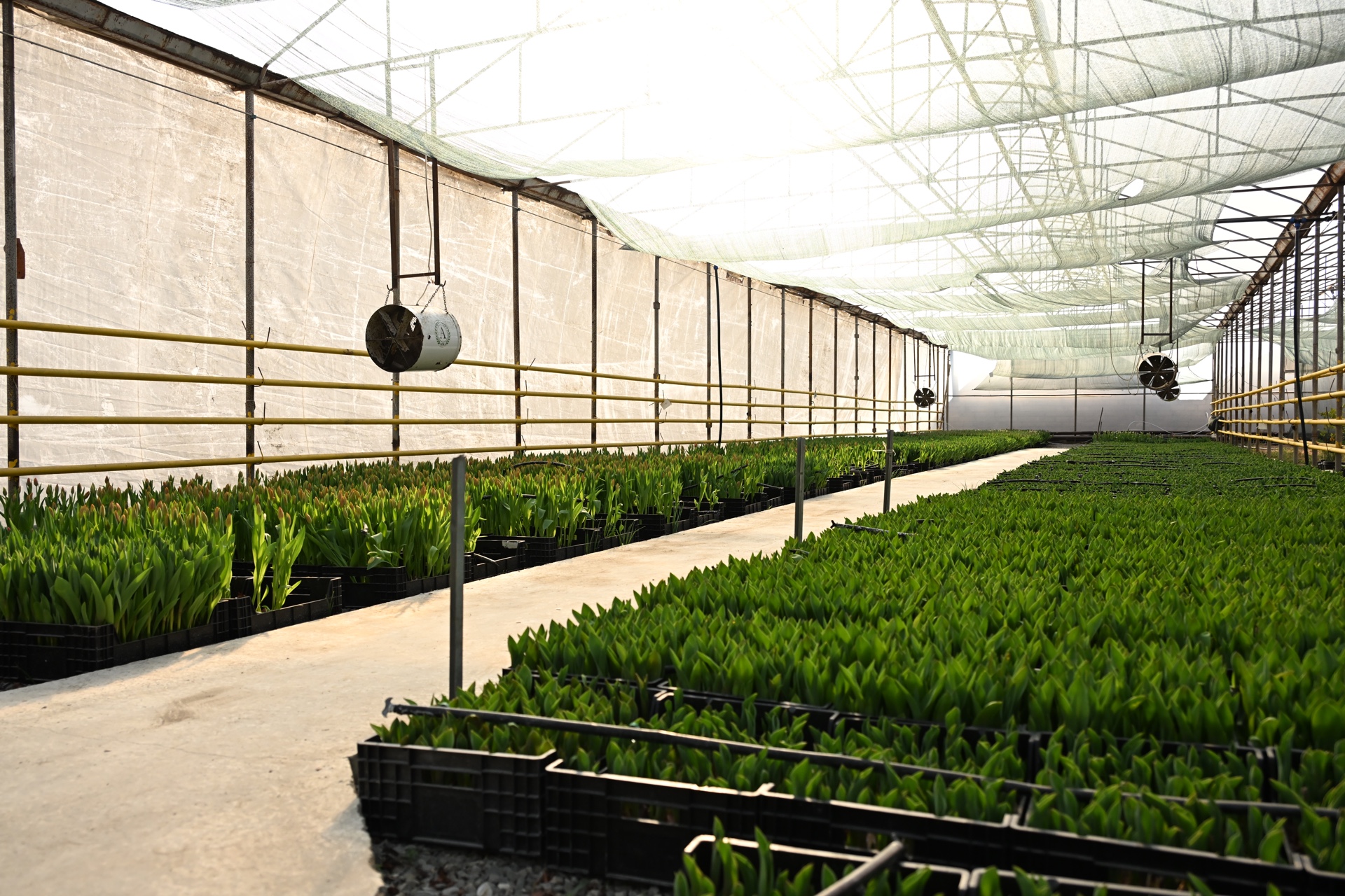 Güllərin sürətlə açılmaması və küləkdən qorunması üçün xüsusi havalandırma və kölgəlik sistemləri tətbiq olunur. Lalələr hər gün təzələnən suyun içində damlama üsulu ilə suvarılır və niderlandlı aqronomların nəzarəti altında inkişaf edir. Köklənmə prosesindən gül açma mərhələsinə qədər olan müddət isə cəmi 21 gün vaxt alır.
