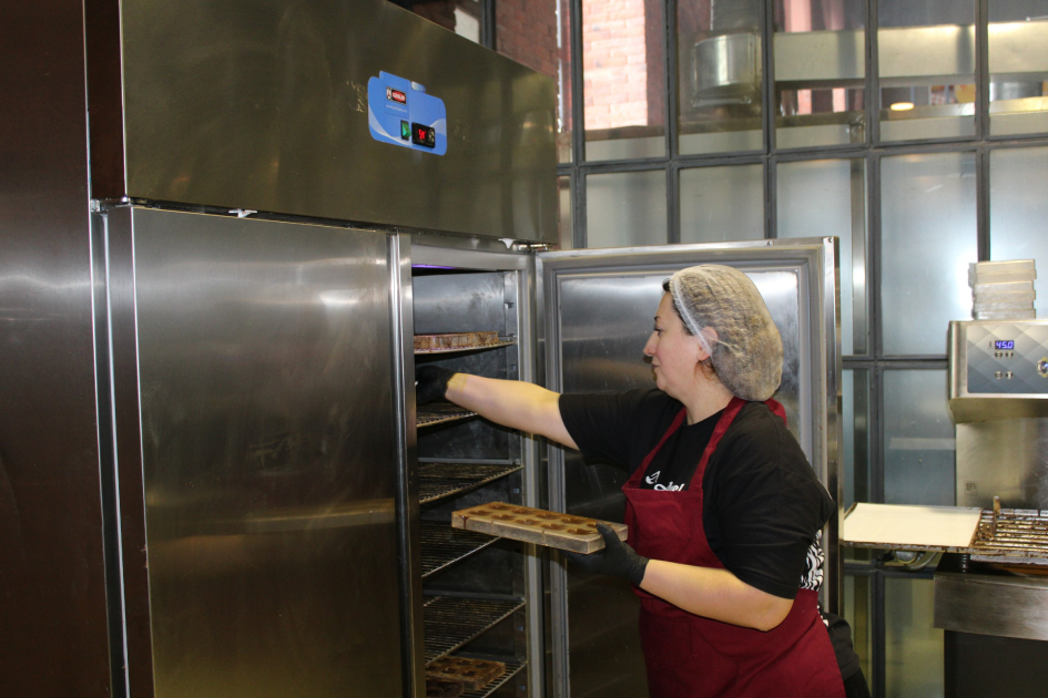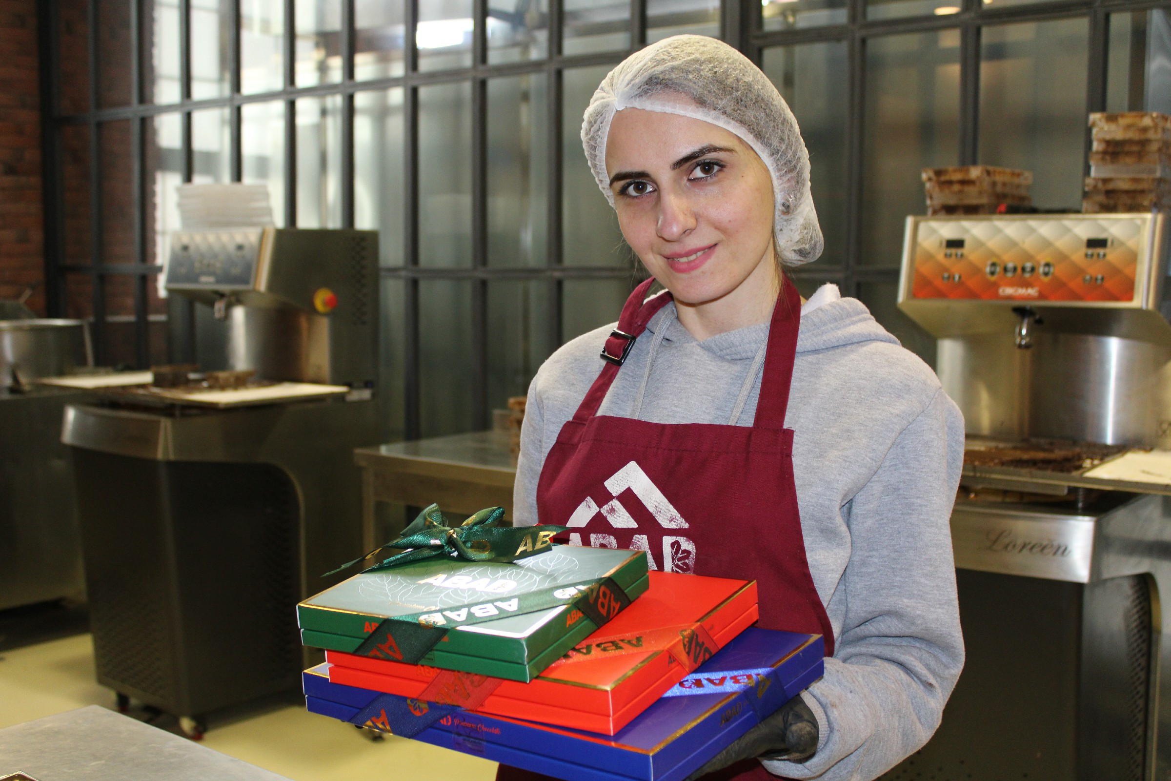 İstehsalat sahəsinin əməkdaşı Dilarə Tağıyeva şokoladın hazırlanma prosesinin incəliklərini belə izah edir: “Bizim şokoladın xammalı Belçikadan gətirilir. Damla formasında olan şokolad kütləsi 29-30 dərəcədə əridilir. Sonra əridilmiş kütlə forma verən xüsusi qəliblərə doldurulur. 15-20 dəqiqə soyuducuda qaldıqdan sonra şokolad qəliblərdən çıxarılaraq qablaşdırılmaya verilir. Burada şokoladın müxtəlif formalı çeşidləri istehsal olunur. Qablaşdırılan məhsullarımız “ABAD” brendi altında satışa çıxarılır. Məhsullarımız çox dadlıdır, dadanlar çox razılıq edirlər”.
