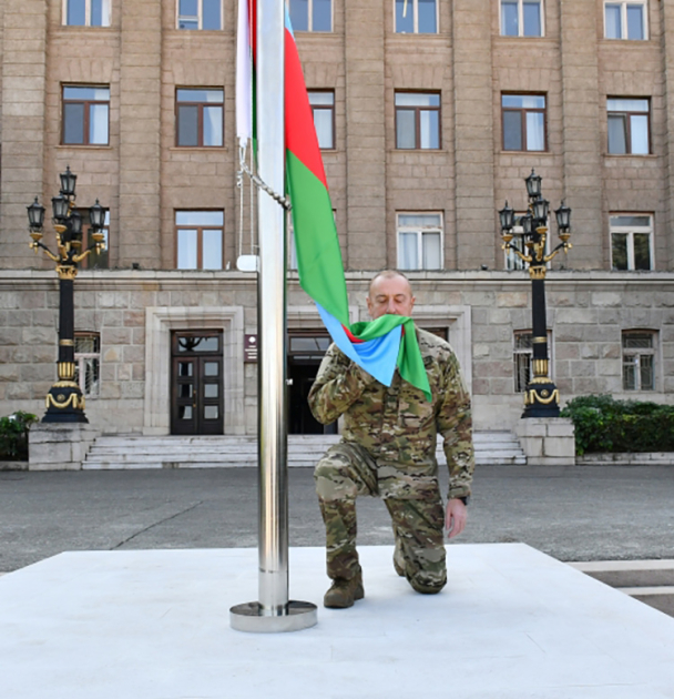 2023-cü il oktyabrın 15-də isə Prezident, Müzəffər Ali Baş Komandan İlham Əliyev Xankəndi, Ağdərə, Xocavənd, Xocalı şəhərlərində, Əsgəran qəsəbəsində Dövlət Bayrağını ucaldıb. Həmin tarixi və qürurverici hadisə bütün soydaşlarımızın qəlbində böyük fərəh və sevinc hissi oyadıb. Həmin il noyabrın 8-də Xankəndi şəhərində Vətən müharibəsində əldə edilən Zəfərə həsr olunan hərbi paradda Dövlət Bayrağının nümayiş etdirilməsi Azərbaycan tarixinin şanlı səhifələrinə əbədi həkk olunub.
