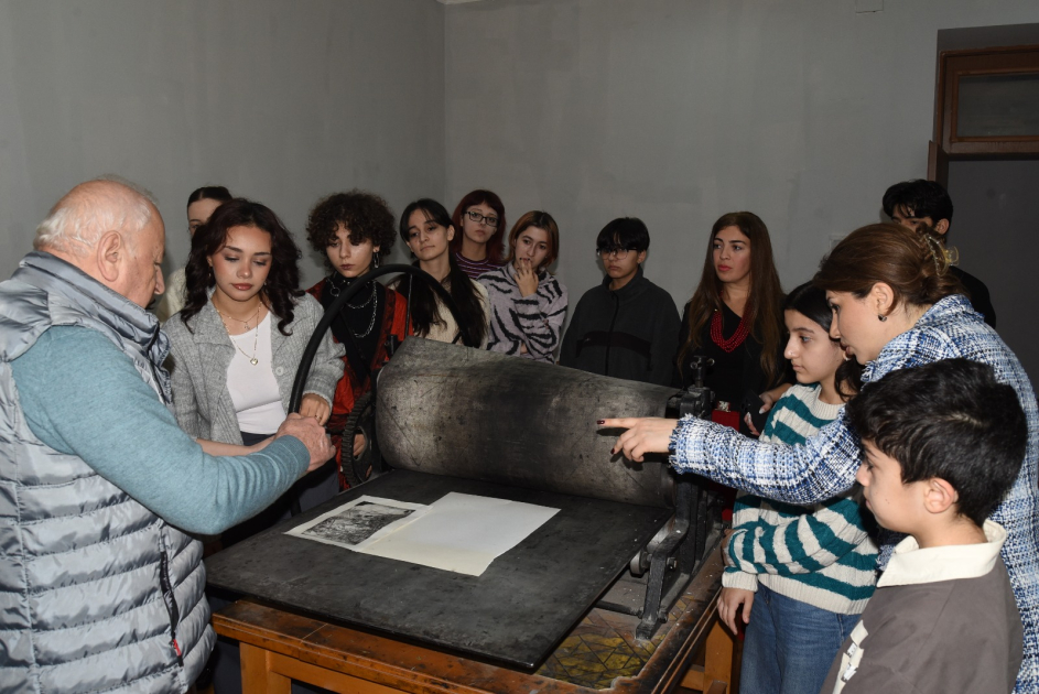 Qrafika ixtisasında aparılan dərs prosesi də qonaqların marağına səbəb olub. Tələbələrin müxtəlif texniki üsullarla işlədiyi işlər, eləcə də kağız, ağac, metal və daş üzərində hazırlanmış rəsmlər və qravüralar böyük maraq doğurub.