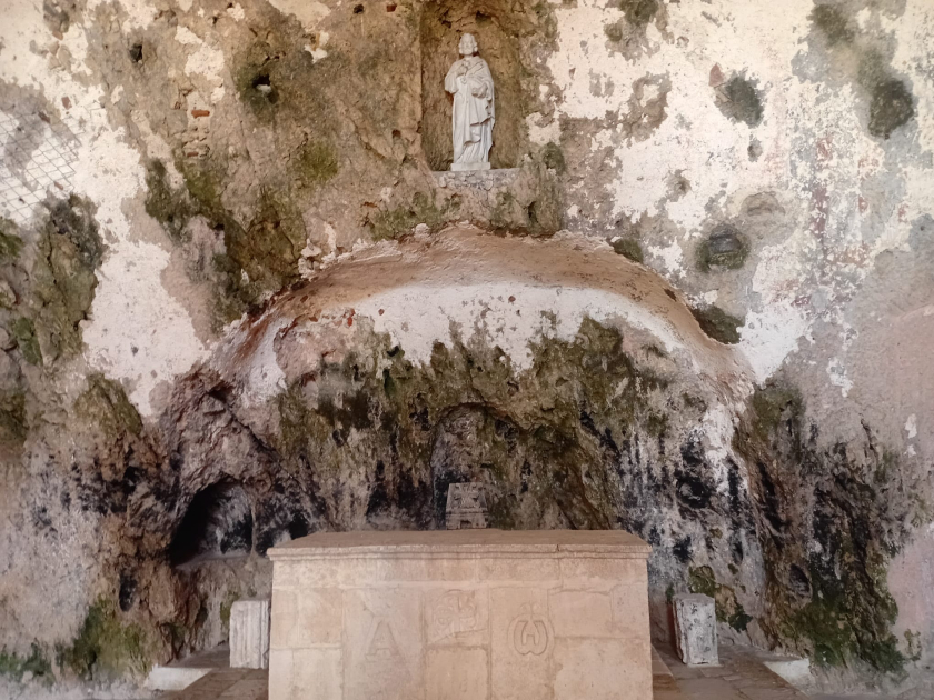 Rəvayətə görə, həvari Pyotr burada kiçik bir daş mağarada dua edib və moizə oxuyub. Bu mağara sonradan şəhərin ilk xristianlarının toplaşdığı məkana çevrilib.
