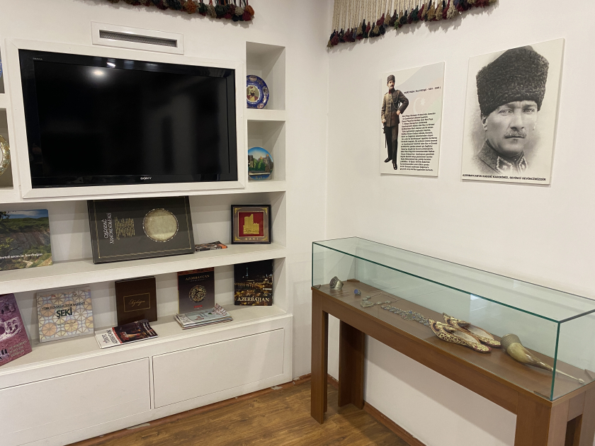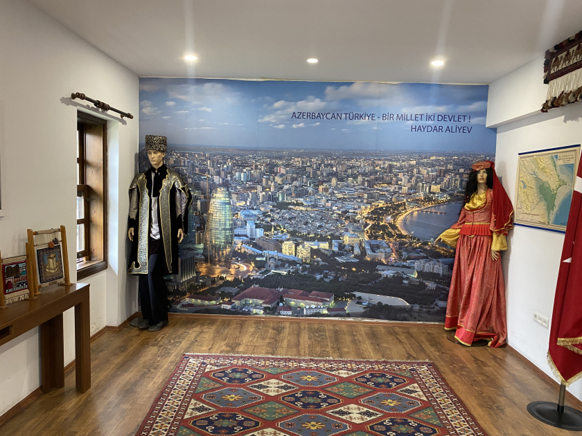 Muzeydə yerləşən Azərbaycan mədəniyyət evində ölkəmizə aid milli-mədəni əsərlər nümayiş olunur. Ümummilli Lider Heydər Əliyevin “Bir millət, iki dövlət” kəlamı ilə ziyarətçiləri salamlayan məkanda Azərbaycan tarixinə dair məlumat lövhələri, kitablar, eləcə də tar, qanun, kamança və balaban kimi milli musiqi alətləri yer alır. Burada Azərbaycanın müxtəlif dövrlərə aid xəritələri, Ulu Öndər Heydər Əliyev və Azərbaycan Prezidenti İlham Əliyevin portretləri, Vətənimizin bənzərsiz gözəlliyini əks etdirən geniş şəkil, Koroğlu və Babək kimi xalq qəhrəmanlarına aid təsvirlər yer alıb. Məkan Azərbaycanın xalçaçılıq sənəti, milli geyim nümunələri və bəzək əşyaları ilə bəzədilib. Mədəniyyət evində Türkiyənin Ulu Öndəri Mustafa Kamal Atatürkə həsr olunan guşə də yaradılıb.