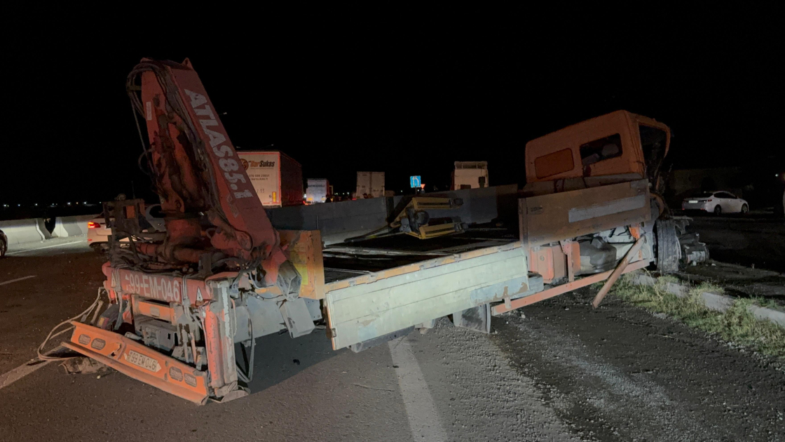 Birinci qəza zamanı Bakı istiqamətində hərəkətdə olan traktorla yük maşını toqquşub. Nəticədə traktor magistral yoldan çıxaraq yol kənarına aşıb. İdarəetməni itirən yük maşını isə beton arakəsməni dağıdaraq yolun əks istiqamətinə çıxıb.