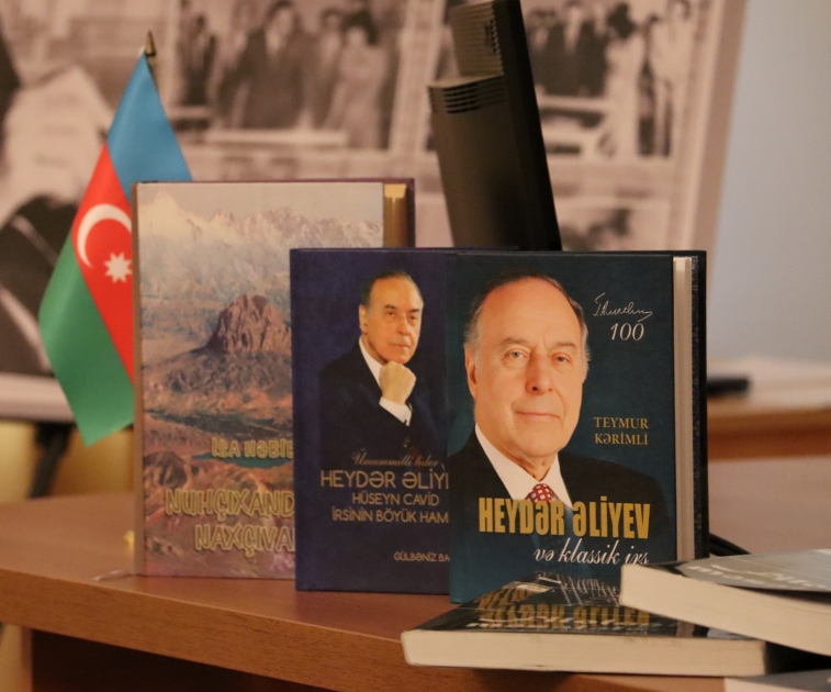 Tədbirdə çıxış edən elmi katib filologiya üzrə fəlsəfə doktoru, dosent Əzizağa Nəcəfov “Heydər Əliyev İli”ndə Əlyazmalar İnstitutunda görülən işlərdən söz açıb, Ulu Öndərin irsinin tədqiqi ilə bağlı ərsəyə gələn nəşrlər, məqalələr, konfrans materialları, sərgilər barədə ətraflı məlumat verib. O, Ümummilli Liderin 100 illik yubileyi münasibətilə Əlyazmalar İnstitutunun Biblioqrafiya şöbəsinin nəşrə hazırladığı “Heydər Əliyev AMEA Məhəmməd Füzuli adına Əlyazmalar İnstitutu əməkdaşlarının tədqiqatlarında” adlı annotasiyalı biblioqrafik göstəricini tədbir iştirakçılarının diqqətinə çatdırıb. Qeyd edib ki, burada institut əməkdaşlarının Ümummilli Lider haqqında nəşr etdirdikləri 6 kitab, 26 məqalə haqqında məlumat və 48 konfrans materialları əksini tapıb. Alim biblioqrafik göstərici əsasında elektron baza və geniş kitab sərgisinin də hazırlandığını qeyd edib.