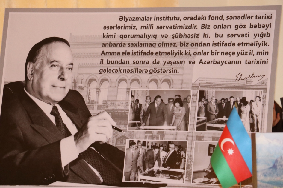 Tədbirdə institutun ərsəyə gətirdiyi “Heydər Əliyev və Əlyazmalar İnstitutu” adlı sənədli film ilk dəfə nümayiş olunub. Filmin ssenari müəllifi AMEA Məhəmməd Füzuli adına Əlyazmalar İnstitutunun direktoru akademik Teymur Kərimli, rejissoru və yaradıcı qrupun rəhbəri Elektron resurslar şöbəsinin əməkdaşı Xatirə Cabbarzadədir. Filmdə Ulu Öndərin Respublika Əlyazmalar Fondunun Əlyazmalar İnstitutuna çevrilməsində, onun maddi-texniki bazasının möhkəmləndirilməsi və fondlarının zənginləşdirilməsində, əlyazmaların daha yaxşı şəraitdə mühafizə olunması üçün bu gün fəaliyyət göstərdiyi binaya köçürülməsində, müəssisəyə dahi Azərbaycan şairi Məhəmməd Füzulinin adının verilməsindəki misilsiz xidmətlərindən ətraflı bəhs edilib.