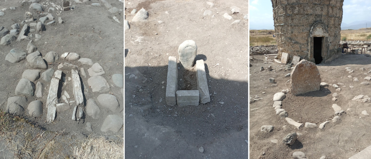 İslam dövrü nekropolunda qəbirlər 4 qrupa bölünür: sənduqələr, daş qutu formasında, kənarına çay daşları düzülmüş və tam çay daşı ilə örtülü olan qəbirlər. Forma və tipinə görə 1 və 2-ci qrup qəbirlər XVI-XVIII əsrlərə, 3 və 4-cü qrup qəbirlər isə XIII-XV əsrlərə aid edilir. Qəbirlərin sıxlığı orta əsrlərdə ərazinin yerli sakinlərinin davamlı məskunlaşmasının əyani sübutudur. Çox yanaşı salınan qəbirlər ehtimal ki, qohumluq əlaqəsi olan şəxslərə və yaxud bir ailə üzvlərinə aiddir. Nekropolda uşaq qəbirlərinin azlığı həmin dövrdə uşaq ölümlərinin sayının az olmasının göstəricisidir”.