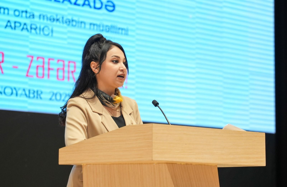 Ailə, Qadın və Uşaq Problemləri üzrə Dövlət Komitəsinin sədri Bahar Muradova çıxışı zamanı bildirib ki, Azərbaycan gəncliyi müstəqillik dövründə böyüyən, Zəfərin övladları sayılan nəsildir. O qeyd edib ki, gənclər qalib xalqın davamçıları kimi gələcək fəaliyyətlərini bu gücün və məsuliyyətin üzərində qurmalıdırlar. 2020-ci il başlayan Vətən müharibəsinin Azərbaycan xalqının və dövlətinin birliyinin, liderlik və peşəkarlığın ən parlaq nümunəsinə çevrildiyini vurğulayan sədr Zəfərdən dərhal sonra sülh prosesinə başlanmasının xalqımızın düşüncəsinin və uzaqgörənliyinin göstəricisi olduğunu əlavə edib. O qeyd edib ki, Yeni Azərbaycan Partiyası bütün bu illər ərzində Ulu Öndər Heydər Əliyev ideyalarına əsaslanaraq ölkədə gedən ictimai-siyasi proseslərdə fəal iştirak edib və bu ideyaların həyata keçirilməsində aparıcı qüvvələrdən olub. Bahar Muradova vurğulayıb ki, Azərbaycanın inkişaf yolu davam edir və bu yol ata-babalarımızdan, bugünkü tərəfdaşlarımızdan, sabahkı gənclikdən keçərək gələcəyə uzanır və bu əlaqə heç vaxt qırılmayacaq, bu irs hər zaman möhkəm qalmalıdır. Hər bir kəsin Zəfərdən doğan qürur hissi ilə yanaşı, onun qorunmasına, gələcək nəsillərə ötürülməsinə və bu Zəfərdən doğan öhdəliklərin yerinə yetirilməsinə töhfə verməli olduğunu vurğulayan sədr gənclərə milli-mənəvi dəyərlərə sadiq qalmağı, öz sahələrində peşəkar mütəxəssislər olmağı, gələcək nəsillərə örnək olacaq sağlam ailələr qurmağı, milli ruhda övladlar böyütməyi tövsiyə edib.